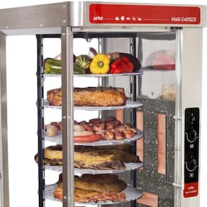 A churrasqueira Multi Grill é o novo lançamento da Arke, feita especialmente para assar grandes quantidades de alimentos. Esta churrasqueira à gás possui 7 grades que permite assar até 4 frangos em cada grade e seu sistema rotativo assa os alimentos por inteiro, de forma homogênea, deixando-os muito mais saborosos. Com a churrasqueira Multi Grill você pode assar frangos inteiros, peças de carnes, linguiças e legumes tudo em pouco tempo.