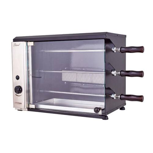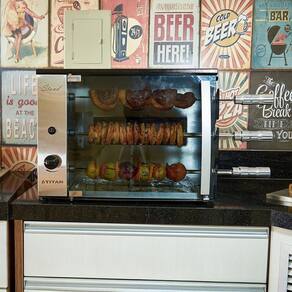 Churrasqueira a gás de bancada vertical 3 espetos com porta de vidro stand Voltagem: 127v Tipo de gás: gás natural Prática, compacta e eficiente, a churrasqueira a gás de bancada vertical titan stand é ideal para quem busca churrascos saborosos sem fumaça. Possui 3 espetos rotativos 2 simples e 1 triplo , queimador infravermelho com controle individual, acendimento manual e porta frontal de vidro temperado com abertura prática. Conta ainda com estrutura resistente em aço carbono com pintura epóxi, bandeja coletora de gordura e painel curvo em inox. Perfeita para carnes, peixes e legumes, com capacidade total para até 5,1 kg. Atenção: escolha o tipo de gás correto Antes de finalizar a compra, verifique qual o tipo de gás disponível no seu imóvel: - glp gás de botijão ou cilindro : é o famoso gás de cozinha, vendido em botijões ex: p45 . Ideal para casas com abastecimento por botijão ou cilindro. - gn gás natural ou canalizado : conhecido como gás de rua, é fornecido por encanamento, comum em apartamentos e comércios. - escolher a versão errada pode causar falha na instalação e perda da . Desempenho e especificações: - queimador infravermelho: 1 unidade; - consumo de gás por queimador: 190 g/h; - consumo total de gás: 190 g/h; - tipo de gás: glp ou gás natural; - pressão de funcionamento: gás: glp 2,8 a 3,5 kpa gás natural 2,2 kpa; escolher no momento da compra ; - motorredutor elétrico: 12v, potência 28w; - giro do espeto: 6rpm; - consumo elétrico: 0,06 kw/h; - tensão: 127v ou 220v escolher no momento da compra ; - frequência: 60hz; - espetos suportam 1,7 kg. Design e estrutura: - estrutura externa em aço carbono com pintura epóxi em preto fosco; - painel frontal curvo em inox; - coifa interna esmaltada; - bandeja coletora de gordura em alumínio com frente de inox; - porta frontal de vidro temperado; - 03 espetos rotativos com cabo de madeira preto - sendo 02 simples e 01 triplo; - controlador de queimador individual. Medidas: - dimensões do produto axlxp : 41 x 55 x 31 cm; - dimensões da embalagem axlxp : 48 x 62 x 41 cm; - peso líquido: 15,5 kg peso bruto: 18 kg. Acessórios inclusos: - bandeja coletora de gordura com frente de inox; - 3 espetos rotativos 2 simples e 1 triplo . Informações adicionais: As entregas são feitas em horário comercial e a montagem fica por conta do comprador. As imagens são meramente ilustrativas podendo apresentar itens que não compõe o produto. As cores do produto podem variar de acordo com o monitor ou percepção visual. Marca: Não Informado