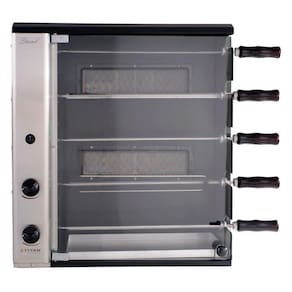 Churrasqueira a gás de bancada vertical 5 espetos stand titan Tipo de gás - voltagem: glp - 127v Prática, compacta e eficiente, a churrasqueira a gás de bancada vertical titan stand é ideal para quem busca churrascos saborosos sem fumaça. Possui 5 espetos rotativos 4 simples e 1 triplo , queimador infravermelho com controle individual, acendimento manual e porta frontal de vidro temperado com abertura prática. Conta ainda com estrutura resistente em aço carbono com pintura epóxi, bandeja coletora de gordura e painel curvo em inox. Perfeita para carnes, peixes e legumes, com capacidade total para até 8,5 kg. Atenção: escolha o tipo de gás correto Antes de finalizar a compra, verifique qual o tipo de gás disponível no seu imóvel: - glp gás de botijão ou cilindro : é o famoso gás de cozinha, vendido em botijões ex: p45 . Ideal para casas com abastecimento por botijão ou cilindro. - gn gás natural ou canalizado : conhecido como gás de rua, é fornecido por encanamento, comum em apartamentos e comércios. - escolher a versão errada pode causar falha na instalação e perda da . Em caso de dúvidas, consulte a nossa equipe antes de finalizar a compra. Desempenho e especificações: - queimadore infravermelhos: 2 unidades; - consumo de gás por queimador: 190 g/h; - consumo total de gás: 380 g/h; - tipo de gás: glp ou gás natural; - pressão de funcionamento: gás: glp 2,8 a 3,5 kpa gás natural 2,2 kpa; escolher no momento da compra ; - motorredutor elétrico: 12v, potência 28w; - giro do espeto: 6rpm; - consumo elétrico: 0,06 kw/h; - tensão: 127v ou 220v escolher no momento da compra ; - frequência: 60hz; - espetos suportam 1,7 kg. Design e estrutura: - estrutura externa em aço carbono com pintura epóxi em preto fosco; - painel frontal curvo em inox; - coifa interna esmaltada; - bandeja coletora de gordura em alumínio com frente de inox; - porta frontal de vidro temperado; - 05 espetos rotativos com cabo de madeira preto - sendo 04 simples e 01 triplo; - controlador de queimador individual. Medidas: - dimensões do produto axlxp : 64 x 55 x 31 cm; - dimensões da embalagem axlxp : 73 x 62 x 41 cm; - peso líquido: 20,5 kg peso bruto: 23 kg. Acessórios inclusos: - bandeja coletora de gordura com frente de inox; - 5 espetos rotativos 4 simples e 1 triplo . Informações adicionais: As entregas são feitas em horário comercial e a montagem fica por conta do comprador. As imagens são meramente ilustrativas podendo apresentar itens que não compõe o produto. As cores do produto podem variar de acordo com o monitor ou percepção visual. Marca: Não Informado
