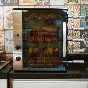 Churrasqueira a gás de bancada vertical 5 espetos stand titan Voltagem: 127v Tipo de gás: gás natural Prática, compacta e eficiente, a churrasqueira a gás de bancada vertical titan stand é ideal para quem busca churrascos saborosos sem fumaça. Possui 5 espetos rotativos 4 simples e 1 triplo , queimador infravermelho com controle individual, acendimento manual e porta frontal de vidro temperado com abertura prática. Conta ainda com estrutura resistente em aço carbono com pintura epóxi, bandeja coletora de gordura e painel curvo em inox. Perfeita para carnes, peixes e legumes, com capacidade total para até 8,5 kg. Atenção: escolha o tipo de gás correto Antes de finalizar a compra, verifique qual o tipo de gás disponível no seu imóvel: - glp gás de botijão ou cilindro : é o famoso gás de cozinha, vendido em botijões ex: p45 . Ideal para casas com abastecimento por botijão ou cilindro. - gn gás natural ou canalizado : conhecido como gás de rua, é fornecido por encanamento, comum em apartamentos e comércios. - escolher a versão errada pode causar falha na instalação e perda da . Desempenho e especificações: - queimadore infravermelhos: 2 unidades; - consumo de gás por queimador: 190 g/h; - consumo total de gás: 380 g/h; - tipo de gás: glp ou gás natural; - pressão de funcionamento: gás: glp 2,8 a 3,5 kpa gás natural 2,2 kpa; escolher no momento da compra ; - motorredutor elétrico: 12v, potência 28w; - giro do espeto: 6rpm; - consumo elétrico: 0,06 kw/h; - tensão: 127v ou 220v escolher no momento da compra ; - frequência: 60hz; - espetos suportam 1,7 kg. Design e estrutura: - estrutura externa em aço carbono com pintura epóxi em preto fosco; - painel frontal curvo em inox; - coifa interna esmaltada; - bandeja coletora de gordura em alumínio com frente de inox; - porta frontal de vidro temperado; - 05 espetos rotativos com cabo de madeira preto - sendo 04 simples e 01 triplo; - controlador de queimador individual. Medidas: - dimensões do produto axlxp : 64 x 55 x 31 cm; - dimensões da embalagem axlxp : 73 x 62 x 41 cm; - peso líquido: 20,5 kg peso bruto: 23 kg. Acessórios inclusos: - bandeja coletora de gordura com frente de inox; - 5 espetos rotativos 4 simples e 1 triplo . Informações adicionais: As entregas são feitas em horário comercial e a montagem fica por conta do comprador. As imagens são meramente ilustrativas podendo apresentar itens que não compõe o produto. As cores do produto podem variar de acordo com o monitor ou percepção visual. Marca: Não Informado