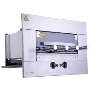 Churrasqueira a gás de embutir com 4 espetos, ideal para assar churrascos e pizzas. Possui amplo espaço interno, com 4 posições para espetos. Com desenho requintado dará um toque especial em sua área Gourmet. Não produz fumaça, o que faz o seu churrasco muito mais agradável.