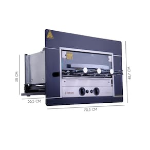 Leve praticidade e sofisticação ao seu espaço gourmet com a Churrasqueira a Gás Titan para embutir. Com sistema rotativo, queimadores infravermelhos e porta de vidro temperado, ela assa carnes, legumes e até pizzas sem produzir fumaça. Compacta, silenciosa e eficiente, é ideal para nichos em alvenaria e acompanha 4 espetos rotativos, iluminação interna e bandeja coletora de gordura.