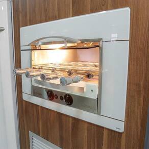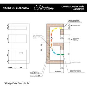 Leve praticidade e sofisticação ao seu espaço gourmet com a Churrasqueira a Gás Titan Branca para embutir. Com sistema rotativo, queimadores infravermelhos e porta de vidro temperado, ela assa carnes, legumes e até pizzas sem produzir fumaça. Compacta, silenciosa e eficiente, é ideal para nichos em alvenaria e acompanha 4 espetos rotativos, iluminação interna e bandeja coletora de gordura. ATENÇÃO: ESCOLHA O TIPO DE GÁS CORRETO Antes de finalizar a compra, verifique qual o tipo de gás disponível no seu imóvel: - GLP (Gás de Botijão ou Cilindro): é o famoso gás de cozinha, vendido em botijões (ex: P45). Ideal para casas com abastecimento por botijão ou cilindro. - GN (Gás Natural ou Canalizado): conhecido como gás de rua, é fornecido por encanamento, comum em apartamentos e comércios. - Escolher a versão errada pode causar falha na instalação e perda da garantia. Em caso de dúvidas, consulte a nossa equipe antes de finalizar a compra. DESEMPENHO E ESPECIFICAÇÕES: - Queimadores infravermelhos: 2 unidades; - Consumo gás por queimador: 190 g/h; - Consumo gás total: 380 g/h; - Potência do Motorredutor elétrico: 28W; - Tipo de gás: GLP; - Pressão de funcionamento: GLP 2,8 a 3,5 KPa; - Tensão: 127v; - Giro do espeto: 6RPM; - Frequência: 60Hz; - Lâmpada: Halopin G9, 127, 40W; - Consumo elétrico 0,06 Kw/h; - Acendimento: Automático com botão em INOX. DESIGN E ESTRUTURA: - Acabamento superior, em aço INOX 304; - Porta frontal de vidro temperado com sistema telescópico; - Grade interna de apoio; - Válvula de segurança contra vazamento de gás; - Bandeja coletora de gordura com frente de inox; - Controlador de queimador individual; - 04 Espetos rotativos com cabo TÉRMICO – Sendo 03 simples e 01 triplo; - Lâmpada interna; - Acendedor automático de fogo. MEDIDAS: - Dimensões do produto (AxLxP): 48,7 x 70,3 x 56,5 CM - Dimensões da embalagem (AxLxP): 59 x 86 x 68 CM - Peso líquido: 18 kg | Peso bruto: 19 kg. ACESSÓRIOS INCLUSOS: - Bandeja para água; - 01 Espeto simples com cabo térmico; - 01 Grelha para descanso em INOX. Obs: Indispensável o uso do Kit Venezianas para a ventilação do nicho. INFORMAÇÕES ADICIONAIS: *As entregas são feitas em horário comercial e a montagem fica por conta do comprador. **As imagens são meramente ilustrativas podendo apresentar itens que não compõe o produto. As cores do produto podem variar de acordo com o monitor ou percepção visual. Marca: Titan Eletro