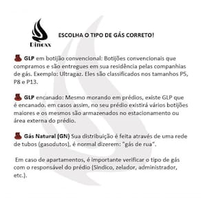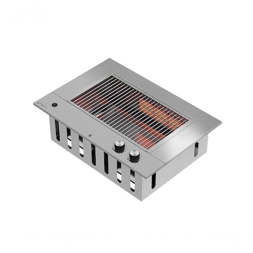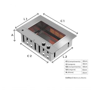100% em aço inoxAço inox 304: Grelhas, tampo, bandeja coletora de gordura; Aço Inox 430: Cocho; 02 queimadores a gás infravermelho (geração de energia por queimador 2250 Kcal/h); 02 botões com regulagem de temperatura do queimador; Pressão de trabalho do queimador: GLP botijão 2,8 Kpa - GLP encanado 2,5 Kpa - GN encanado 1,25 Kpa; Bicos injetores com de 1,00mm gás GLP e 1,4mm gás GN; Sistema Safe Stop (Válvula de segurança corta gás); Acendimento automático (Pilha).