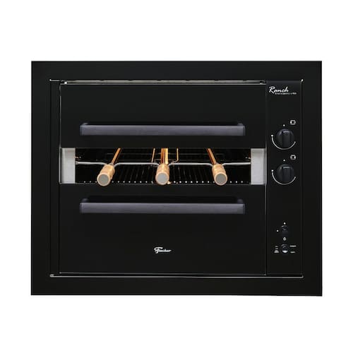 Churrasqueira a Gas de Embutir Fischer 3 Espetos Ranch, e a escolha ideal para quem busca um churrasco funcional, seguro e com toque de sofisticacao. Com design moderno, conta com espetos rotativos automaticos, queimadores infravermelhos, acendimento automatico e lampada interna para facilitar o preparo. Possui sistema corta gas para maior seguranca e revestimento EasyClean, que torna a limpeza mais simples e rapida.