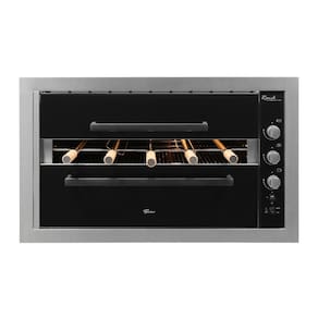 Caracteristicas: Quantidade de espetos: 5 espetos Revestimento interno: Tecnologia EasyClean -de facil limpeza- Lampada: Sim Bandeja coletora para residuos: Sim Funcionamento: Gas Consumo: 570 g/h de GLP Potencia do motor: 5x4W Potencia das Bocas: 3x2250 Kcal Acendimento automatico: Sim Espetos rotativos: Sim Dimensoes do nicho -AxLxP-: 56x93x60cm