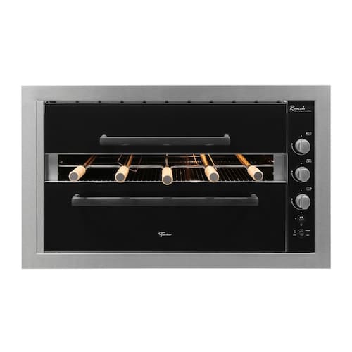 Churrasqueira a Gas de Embutir Fischer 5 Espetos Ranch Inox, oferece funcionalidade, seguranca e alto desempenho para o seu espaco gourmet. Com design sofisticado, conta com portas que mantem o calor, 5 espetos rotativos automaticos para um assado uniforme, acendimento automatico e queimadores infravermelhos que garantem controle preciso da temperatura. A iluminacao interna facilita o preparo e a valvula corta gas oferece mais seguranca. O revestimento EasyClean torna a limpeza rapida e funcional.