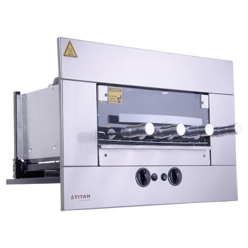 A Churrasqueira a Gás de Embutir Titan 4 Espetos Rotativos 127V é uma excelente escolha para quem deseja modernizar seu espaço gourmet com praticidade e eficiência. Ideal para embutir em nichos de alvenaria, essa churrasqueira se adapta a cozinhas residenciais e áreas de lazer em ambientes fechados, garantindo um churrasco saboroso sem produção de fumaça. Perfeita para o preparo de carnes, legumes, peixes e até pizzas, conta com sistema rotativo de espetos e iluminação interna, proporcionando uma experiência gastronômica completa. Os queimadores infravermelhos asseguram um aquecimento uniforme, enquanto o painel modular em aço inox AISI 304 e a bandeja coletora de gordura facilitam a limpeza e aumentam a durabilidade do produto. A porta de vidro temperado com sistema telescópico permite visualizar o processo sem abrir a churrasqueira, mantendo o calor interno e otimizando o cozimento. Além disso, os espetos rotativos suportam até 1,7 kg de carne cada, permitindo preparar quantidades generosas para toda a família. Equipado com controle individual de queimadores, válvula de segurança contra vazamento e acendimento automático, é um produto seguro e de alta qualidade para uso contínuo.
