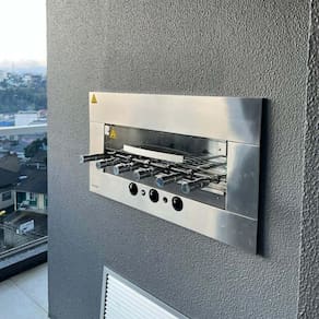 Esta churrasqueira é equipada com um painel frontal modular em aço inox AISI 304 escovado, garantindo durabilidade e elegância ao seu ambiente. Possui uma bandeja coletora de gordura com frente de inox, grade interna de apoio e controlador de queimador individual para maior praticidade. A válvula de segurança contra vazamento de gás e a porta frontal de vidro temperado com sistema telescópico asseguram segurança e funcionalidade. Com 06 espetos rotativos, sendo 05 simples e 01 triplo, cada espeto suporta até 1,7 kg de carne, com uma capacidade total de 10,2 kg. O acendedor automático de fogo e a lâmpada interna tornam o uso ainda mais fácil e conveniente.