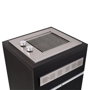 A churrasqueira conta com uma grelha robusta de 6,35 mm e acendimento automático com botão de controle em inox. Além disso, possui registro de controle de temperatura com botões em alumínio e uma bandeja para água, que ajuda a reduzir a fumaça e mantém os alimentos úmidos.Para uso seguro e desempenho ideal, a circulação de ar deve ser garantida com o uso do Kit Venezianas.