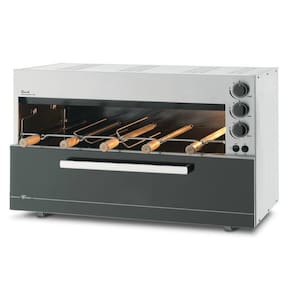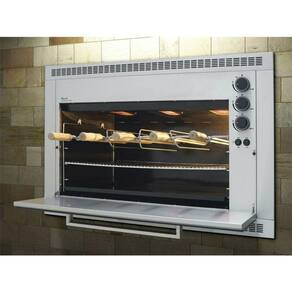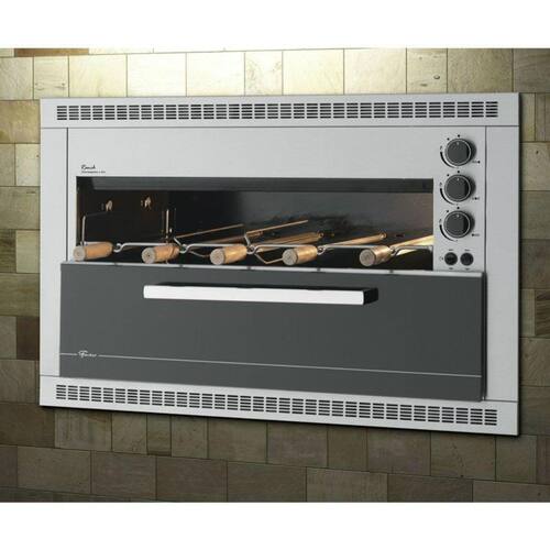 Características: Bancada ou embutir Queimadores infravermelhos Acabamento em aço inox escovado -inclusive a moldura- Lâmpada interna Acendimento automático Espetos rotativos Controle individual dos queimadores Porta de acesso para limpeza Bandeja esmaltada para resíduos Acompanha 4 espetos simples e 2 duplos Grelha cromada Corpo interno esmaltado easy clean Tipo de Gás: sai de fábrica gás GLP, sendo possível a conversão para GN através de um Posto Autorizado Fischer Dimensões Externas do Produto com moldura: -A x L x P- 61,7 x 95,6 x 63 cm Dimensões do nicho de embutir - A x L x P-: 56 x 93 x 60 cm Certificação Inmetro - Portaria 371/2009.
