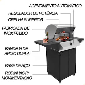 - Fabricada em aço inox 304 alto brilho, possui queimador infravermelho de alta potência, revestimento térmico e bandeja coletora de gordura.