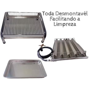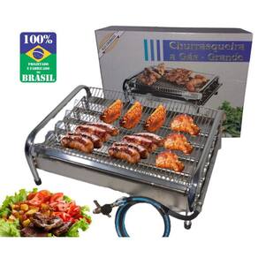 Churrasqueira A Gas Grande 5 Queimador Mangueira E RegistroAs churrasqueiras a Gás são de fato muito funcionais e práticas quando falamos em área de lazer, ou mesmo na varanda de apartamentosAliás, em uma churrasqueira a gás é onde se sente o verdadeiro sabor do alimento. Por não haver a defumação causada pela fumaça do carvão, o sabor do alimento se mantém real ao seu sabor e temperos utilizadosHoje as maiores churrascarias do Brasil utilizam churrasqueiras a gás devido a sua praticidade e vantagem no preparo rápido de carnesVamos falar sobre as vantagens desse equipamento agora, acompanheTemperaturaPor atingir altas temperaturas bem mais rápido, é possível assar diversos tipos de carne de forma bem mais uniformeResíduosComo não há queima de carvão, não há sujeira para limpar. Apenas a bandeja com água que irá receber a gorduraFumaçaNão há emissão de fumaça como nas churrasqueiras a carvão, já que a gordura cai diretamente na bandeja de água, portanto elimina-se os dutos de fumaça, aumentando o espaço na varandaSegurançaPara acender basta liga um botão. Sem álcool, Gel nem nada que seja inflamável.Foi pensando em todas essas vantagens que a Lojas Ricos oferece as churrasqueiras a gás das marcas Super Metal Rio e GiroPlus.Medidas:Comprimento: 49 CmLargura: 36,5 CmAltura: 16 CmFicha técnica- Altura da churrasqueira: 16- Tipo de gás: Engarrafado- Com rodas: Não- Profundidade da churrasqueira: 40- Tipo de gás: GLP- É inflamável: não- Acessórios incluídos: Depósito para gordura- Quantidade de queimadores: 5- Largura da churrasqueira: 50- Cor: Prata- Com tampa: Não- Sistema de ignição: Manual- Material: Aço inoxidável- Inclui cilindro de gás: Não