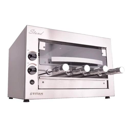 A Churrasqueira a Gás Natural de Bancada Titan Stand 4 Espetos Giratórios 220V é a solução ideal para quem busca um espaço gourmet moderno e prático. Projetada para ser colocada sobre uma base plana, ela é perfeita para assar carnes, legumes, pizzas e garantir um delicioso churrasco. Com um sistema rotativo e queimadores infravermelhos potentes, esta churrasqueira oferece um cozimento uniforme e eficiente. Além disso, sua operação é silenciosa e não produz fumaça, proporcionando uma experiência de uso mais agradável.
