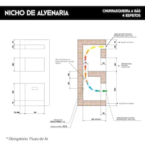 Churrasqueira a Gás Natural de Embutir 4 Espetos Rotativos 220v Age Titan