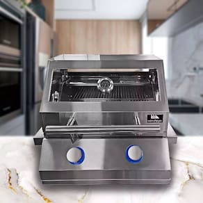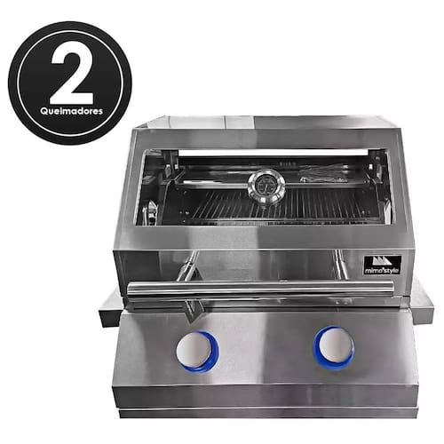 CHURRASQUEIRA A GÁS PARA EMBUTIR 2 QUEIMADORES GOURMET INOX MIMO STYLEA Churrasqueira Inox a gás para embutir Mimo Style foi projetada para valorizar sua área gourmet e proporcionar ainda mais conforto e praticidade para os seus momentos de lazer em família ou amigos. É um produto inovador e resistente, com queimadores controlados separadamente compatíveis com gás GLP e gás natural, tampa de inox com termômetro integrado e principalmente de fácil instalação, é uma churrasqueira que se adapta em qualquer ambiente, perfeita para móveis planejados, bancadas fixas ou móveis. A instalação é de forma rápida e econômica, basta sobrepor a caixa térmica em nicho feito na pedra da bancada, dispensando alvenaria, revestimentos e mão de obra especializada.Especificações:Marca: mimo styleReferência: AHB02Compatível com gás glp e naturalFuncionamento também a bafoPrateleira lateral para espaço extraAcendimento automáticoDimensões (AxLxC): 61 x 55 x 55cmPeso: 22kgConteúdo da embalagem:01 churrasqueira *Garantia: 03 meses contra defeitos de fabricação.*Objetos de decoração das fotos não estão inclusos.*As cores podem variar conforme monitor/smartphone utilizado para a visualização do anúncio.