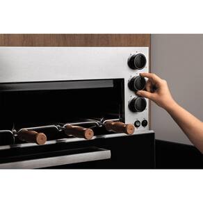 Um produto pratico e facil de usar. A Churrasqueira a Gas Fischer Ranch 5 espetos foi desenvolvida tanto para embutir como para bancada, possui acabamento em aco inox escovado e integra-se perfeitamente a varios estilos de ambientes. A vantagem de uma churrasqueira a gas Fischer Ranch vai ainda muito alem: acendimento automatico, bandeja esmaltada easy clean, lampada interna, espetos rotativos e o controle individual dos queimadores sao diferenciais que facilitam e proporcionam uma experiencia ainda mais agradavel no preparo de um bom churrasco, sem emitir fumaca.
