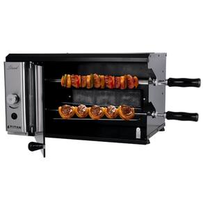 PRINCIPAIS CARACTERÍSTICAS: - Assa sem fumaça: ideal para ambientes internos e gourmets; - Queimador infravermelho único: potente e econômico; - Painel frontal curvo em inox escovado com design moderno; - Estrutura externa robusta: aço carbono com pintura epóxi preta fosca; - Coifa interna esmaltada: melhor circulação do calor e maior durabilidade; - Porta frontal em vidro temperado, com visualização total do preparo; - Bandeja coletora de gordura em alumínio: removível e fácil de limpar; - Acendimento manual da chama.