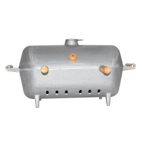 01 Churrasqueira Alumínio Fundido Grosso a Bafo Cinza Pé e Suporte.
