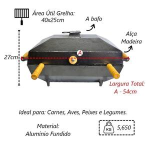 01 Churrasqueira Alumínio Fundido Craqueada Preta Bafo 40x25cm.