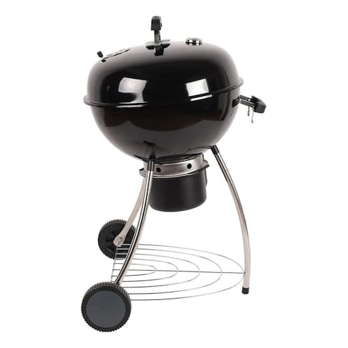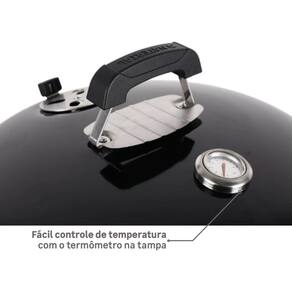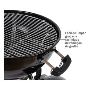Churrasqueira a bafo móvel, com acendimento rápido, controle de temperatura por termômetro embutido na tampa, grelha em aço, alças externas em metal e duas rodas para fácil locomoção. Ideal para uso externo.Vendido por Home Living e entregue por Extra