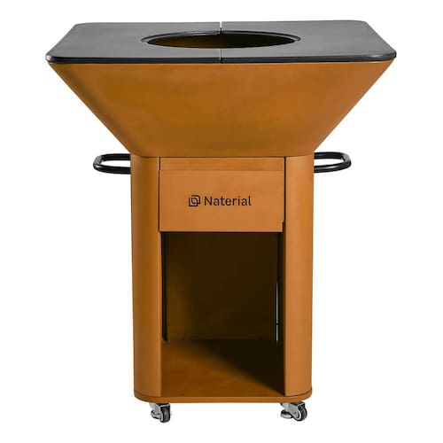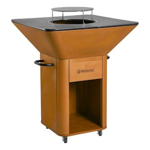 Churrasqueira móvel a carvão com design robusto e elegante. Possui estrutura com rodas para mobilidade, ampla grelha para preparo de diversos cortes de carne simultaneamente, construção em aço de alta qualidade para durabilidade e excelente distribuição de calor, e sistema de ventilação integrado para controle de temperatura. Ideal para varandas, quintais e áreas gourmet.