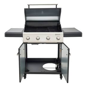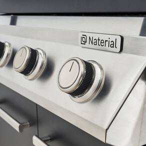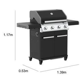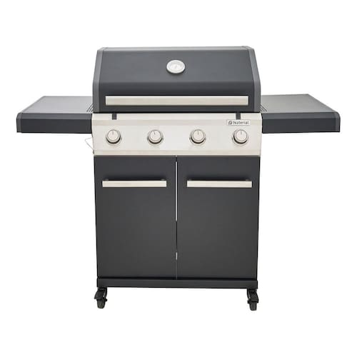 Churrasqueira a gás portátil Kenton II, 4 queimadores, estrutura em aço preto, grelha em ferro, tampa com termômetro integrado, 4 rodas para mobilidade.Vendido por Home Living e entregue por Extra