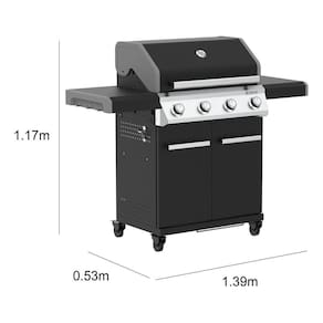 Descubra a praticidade e eficiencia da churrasqueira a gas portatil Kenton II, projetada para transformar seus momentos ao ar livre em experiencias gastronomicas inesqueciveis. Com 117 cm de altura, 139 cm de largura e 53 cm de profundidade, este modelo oferece um design robusto e elegante, ideal para qualquer ambiente externo. A estrutura em aco preto confere durabilidade e resistencia, enquanto as quatro rodas garantem mobilidade e facilidade de transporte. A churrasqueira e equipada com quatro queimadores potentes, proporcionando um cozimento uniforme e rapido. O uso de gas butano ou propano como fonte de energia assegura praticidade e economia, eliminando a necessidade de carvao e facilitando a limpeza. A grelha em ferro assegura uma distribuicao homogenea do calor, realcando o sabor dos alimentos. A tampa preta com termometro integrado permite o controle preciso da temperatura, essencial para o preparo de carnes suculentas e no ponto certo. A Kenton II e a escolha perfeita para quem busca uma solucao portatil e eficiente para churrascos em familia ou entre amigos. Alem disso, a churrasqueira vem desmontada, mas inclui instrucoes de montagem claras, garantindo um processo simples e rapido. Com uma do fabricante de 36 meses, este produto oferece seguranca e tranquilidade. Ideal para areas externas, a churrasqueira a gas Kenton II da Naterial combina funcionalidade e design, sendo a opcao perfeita para os amantes de churrasco que nao abrem mao de qualidade e praticidade. - Produto: Churrasqueira a gas portatil Kenton II.- Uso indicado: Externo.- Alimentacao: Gas Butano e Propano .- Queimadores: 4.- Dimensoes: 117 cm A x 139 cm L x 53 cm P .- Material da grelha: Ferro.- Cor: Preto.- Termometro: Sim.- Rodas: 4.- Peso: 41 kg.- Instalacao: Desmontavel.- : 36 meses. Marca: Não Informado
