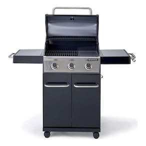 Características da Churrasqueira Profissional a Gás 3 Queimadores Cinza e Preta Kenton Naterial Este é um utensílio de preparação para churrasco. Funciona através do uso de gás, cuja fonte é um botijão abrigado no interior da cabine do produto. Contando com essa fonte de gás, a Churrasqueira Profissional a Gás 3 Queimadores Cinza e Preta Kenton Naterial dispõe de dois queimadores. Eles são regulados através de um termômetro próprio com acendimento automático.