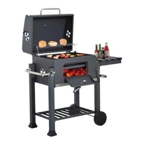 Churrasqueira Americana Bafo Carvão Grelhas Rodas - Itapuama Churrasqueira à Bafo no Carvão com Rodas e Termômetro Itapuama Feito com chapas de aço e com termômetro de luxo. Área para cozimento: 58 x 42 cm l x p . Tampa articulada para cozinhar ou defumar Grelha com acabamento esmaltado para facilitar a limpeza Prateleira lateral dobrável com gancho e armazenamento Bandeja de carvão com altura ajustável para controle de temperatura Porta de acesso para carvão e coletor de cinza removível Grelha de aquecimento separada. A grade se encaixa perfeitamente em todos os jardins. Graças à construção sólida, é muito estável e garante a segurança de uso. Seu tamanho permite que você prepare muitas deliciosas iguarias ao mesmo tempo.