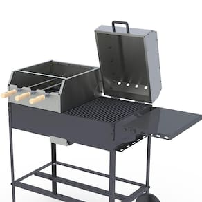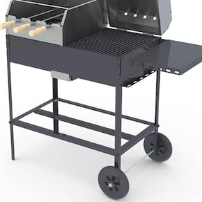 CHURRASQUEIRA AMERICANA ROTATIVA PROGÁS PRCA-340 AÇO INOX COM RODAS MESA E GRELHA BIVOLT P41714 Marca: Progás Modelo: Americana PRCA-340 Bivolt P41714