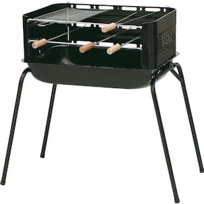 Composição do Produto Estrutra em aço com acabamento em pintura preta a base de agua. Acessórios cromados. Acessórios: 01 Grelha ,03 espetos simples 58 cm e 01 espeto duplo 58 cm Manual: Sim