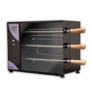 Churrasqueira elétrica rotativa com 3 espetos, sistema de rotação para assado homogêneo, aquecimento por resistência, pés antiderrapantes, estrutura em aço carbono com pintura epóxi.Vendido e entregue por WebContinental