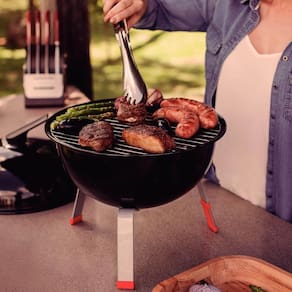 A churrasqueira a carvão TCP-320L é de fácil montagem, manuseio e armazenamento. Acompanha grelha e utensílio para manusear a grelha de aço inox. Seus 44 cm de altura permitem que você possa preparar churrascos com apenas 1Kg de carvão. Conta com tampa em aço esmaltado que possui aberturas laterais que mantém a oxigenação do braseiro mantendo o fogo aceso, controlando o fluxo de calor interno permitindo que o alimento seja assado de maneira uniforme. Acompanha uma grelha de aço inox, pegador e manípulo de baquelite, pernas de aço pintado e com proteções de silicone, garantindo estabilidade. O resultado é uma carne muito mais macia, suculenta para você saborear quando e onde quiser.