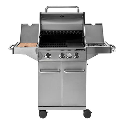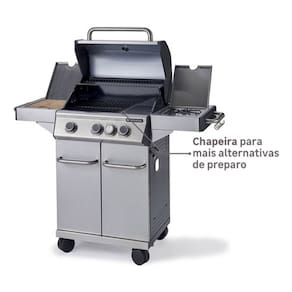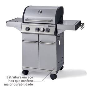 Este modelo Hudson vem com tres queimadores alimentados a gas GLP, proporcionando um controle preciso da temperatura para uma variedade de alimentos. A churrasqueira tambem inclui um termometro e um controle de temperatura para garantir o cozimento perfeito. A tampa de aco serve para reter o calor, enquanto o grill incluido permite que voce prepare uma variedade de carnes e vegetais com facilidade. A grelha de churrasqueira tem 61cm de largura e 41cm de comprimento, oferecendo amplo espaco para cozinhar para toda a familia ou para um grupo de amigos.