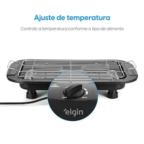 É portátil e compacta, garantindo praticidade para montar, usar, limpar, guardar e transportar. A Grelha, resistência e bandeja de resíduos são removíveis para facilitar na hora de limpar. Além disso, possui dois níveis de ajuste para altura do grill que permite ajustar conforme a sua necessidade. Para aumentar a segurança, tem base antiderrapantes e bandeja antifumaça evitando que a gordura queime e deixe ambiente cheio de fumaça. A Elgin oferece garantia expressa de 1 ano para você usar sua churrasqueira sem preocupação.