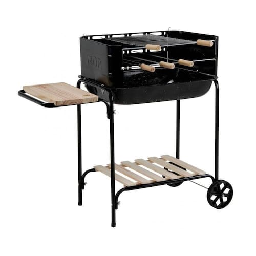 Um bom churrasco é a melhor pedida para uma confraternização, não é mesmo? Foi pensando nisso que a Mor desenvolveu a Churrasqueira Bonanza. Prática de montar, é perfeita para a reunião com a família e os amigos no parque, em casa, na praia ou onde preferir. Com estrutura em chapa de aço esmaltado, pés em tubo de aço, acabamento em pintura preta à base de água, grade para utensílios, tábua para churrasco e rodas para facilitar o transporte, ela é perfeita para todos os tipos de churrasqueiros, do mais requintado até os churrasqueiros de fim de semana! Ela já chega para você equipada com uma grelha com cabo de madeira, dois espetos simples de 58cm e um espeto duplo de 58cm, ou seja, basta comprar seu corte de carne favorito!