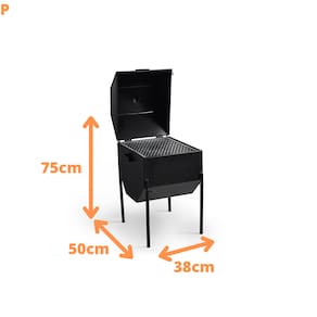 Churrasqueira Campeira de Chapa Galvanizada Preta Olibox. Nossa churrasqueira é fabricada com alta qualidade, feita de chapa galvanizada e com pintura na cor preta.