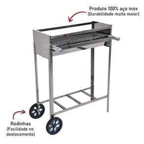 Churrasqueira Carrinho Espetinhos Portátil com Grelha Inox
