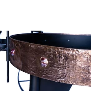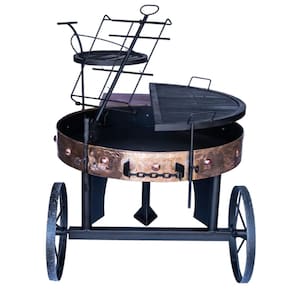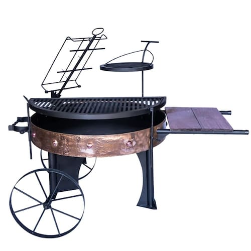 Churrasqueira com detalhes em cobre e rodas, perfeita para grandes churrascos com amigos e família. Churrasqueira fogo de chão onde se pode fazer um