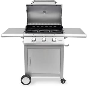 3 Queimadores Controlados Separadamente: Ajuste o calor de acordo com suas preferências e pratos.Acendimento Automático: Inicie seu churrasco com facilidade e rapidez.Termômetro: Monitore a temperatura interna para churrascos precisos.Bandeja para Retirada de Gordura: Mantenha sua churrasqueira limpa e seus alimentos saudáveis.Com Armário e Rodas Deslizantes: Armazene utensílios e mova a churrasqueira com facilidade.Grelhas: Perfeitas para grelhar carnes, frango, legumes e muito mais.Funciona Também a Bafo: Prepare pratos que requerem cozimento lento e suculência.Compatibilidade com Gás Butano de Baixa Pressão, Gás Propano ou Misturas de GLP: Certifique-se de utilizar o registro de baixa pressão adequado através de uma mangueira flexível.Especificações: