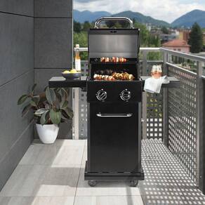 Por que amamos issoÉ a solução ideal para espaços menores. E oferece excelente desempenho enquanto ainda tem boa aparência!DestaquesGrelha compacta premium para serviço pesadoTampa extremamente alta para melhor desempenho de cozimentodesign eleganteFácil de guardar em espaços apertadosPorta frontal para acessar o gásEspecificaçõesDesign compacto ideal para pequenos espaçosDois queimadores de aço inoxidável 30422.000 BTUs totaisPrateleiras laterais dobráveisAlças e puxadores cromados Grelhas de cozimento de ferro fundido para serviço pesado4 rodízios, 2 com travasPorta frontalDimensão: 120x109x54 (AxLxP)Peso: 38kg