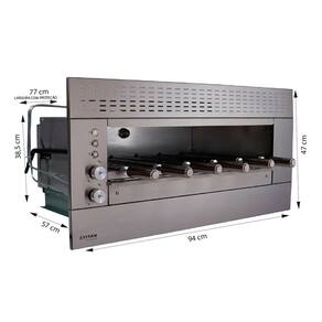 Ideal para espaços gourmet, esta churrasqueira a gás possui 6 espetos rotativos que assam até 10 kg de carnes de forma uniforme. Com painel ventilado e estrutura em inox, oferece alta performance, durabilidade e um visual moderno. Conta com queimadores potentes, acendimento prático e sistema de segurança contra vazamento de gás.