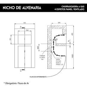 Churrasqueira de Embutir a Gás Natural 4 Espetos 220v Painel Ventilado Age Titan