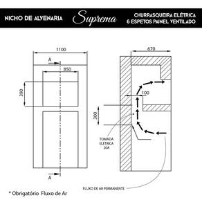 Churrasqueira de Embutir Elétrica 6 Espetos Painel Ventilado Suprema - Voltagem: 220v