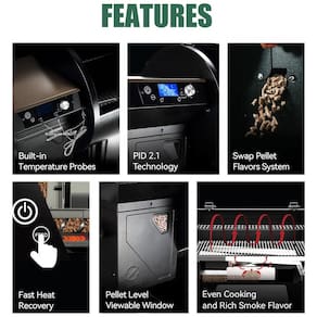 A grelha de pellets apresenta a tecnologia PID 2.0, que conta com uma tela LCD para ajuste automático de combustível e fluxo de ar, garantindo consistência de temperatura apesar de variações significativas de temperatura externa. Com uma capacidade enorme de espaço para grelhar, é ótima para casa, festas e utilização não autorizada. O funil de pellets de grande capacidade oferece um tempo de cozimento mais longo. A construção robusta em aço com acabamento em pó para alta temperatura torna a grelha de pellets duradoura. A grande tela LCD com 2 sondas de carne incluídas tornam o processo de fumo mais fácil, basta configurá lo e deixá lo funcionar, sem cuidar da churrasqueira. É possível monitorar convenientemente o fornecimento de pellets sem ter que levantar a tampa com a janela de visualização. A limpeza do funil torna muito fácil esvaziar o reservatório e trocar os sabores dos pellets, preparando se para infundir sua comida com um rico sabor de fumaça. A mobilidade superior da grelha de pellets é garantida pelas 2 rodas robustas que conquistam facilmente qualquer terreno de quintal, enquanto os 2 rodízios com travas promovem um rolamento suave e fixam a churrasqueira no lugar.