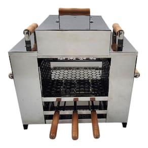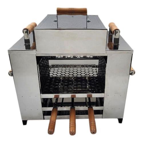 Churrasqueira ecológica sem fumaça, modelo grande, 3 andares, 2 grelhas + 3 espetos, tampa a bafo, zero fumaça, ideal para ambientes internos ou varandas. Caixas de carvão nas laterais com bandeja coletora de gordura na parte inferior para evitar fumaça. Requer carvão 100% eucalipto de boa qualidade e álcool sólido ou em gel para acendimento sem fumaça.Vendido e entregue por Olist Store