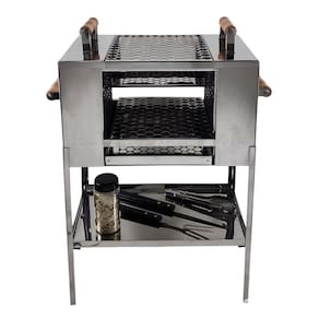 Churrasqueira a carvão para apartamento em aço inox 430. Ideal para ser Utilizado em locais fechados como varandas, sacadas e áreas de serviço, pois não produz fumaça. Aviso: tempero, faca e pegador meramente ilustrativos não acompanham o produto . Os pés são de aço inox e desmontáveis. Possui espaço para colocar 3 espetos ao retirar a grelha inferior É possível embutir quando retirados os cabos e pés. Aço inox 430 Medidas: Largura: 45 cm Largura com os cabos 55cm Comprimento: 27 cm Altura sem os pés: 27 cm Altura com os pés: 73 cm Grelha Largura: 24 cm Comprimento: 27 cm Acompanha 2 grelhas 2 caixas para armazenar o carvão 2 tampas da caixa de carvão 1 bandeja para armazenar a gordura Pés da churrasqueira Bandeja embaixo para guardar objetos também está inclusa Por que churrasqueira sem fumaça O que provoca a fumaça no churrasco é o contato da gordura da carne no carvão. Nesta churrasqueira as caixas de carvão são nas laterais. Desta forma a gordura da carne cai diretamente na bandeja de água que fica na parte debaixo, não produzindo fumaça. Mas é preciso tomar cuidado para não sair fumaça no acendimento. É necessário usar carvão 100% eucalipto de boa qualidade e álcool sólido ou em gel. Se for outro tipo de carvão e acendedor, sairá fumaça sim. Marca: Não Informado Ean: 7892854400593