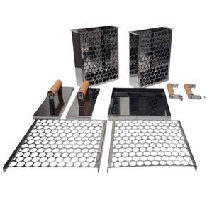 Churrasqueira a carvão para apartamento em aço inox 430. Ideal para ser Utilizado em locais fechados como varandas, sacadas e áreas de serviço, pois não produz fumaça. Aviso: tempero, faca e pegador meramente ilustrativos não acompanham o produto . Os pés são de aço inox e desmontáveis. Possui espaço para colocar 3 espetos ao retirar a grelha inferior É possível embutir quando retirados os cabos e pés. Aço inox 430 Medidas: Largura: 45 cm Largura com os cabos 55cm Comprimento: 27 cm Altura sem os pés: 27 cm Altura com os pés: 73 cm Grelha Largura: 24 cm Comprimento: 27 cm Acompanha 2 grelhas 2 caixas para armazenar o carvão 2 tampas da caixa de carvão 1 bandeja para armazenar a gordura Pés da churrasqueira Bandeja embaixo para guardar objetos também está inclusa Por que churrasqueira sem fumaça O que provoca a fumaça no churrasco é o contato da gordura da carne no carvão. Nesta churrasqueira as caixas de carvão são nas laterais. Desta forma a gordura da carne cai diretamente na bandeja de água que fica na parte debaixo, não produzindo fumaça. Mas é preciso tomar cuidado para não sair fumaça no acendimento. É necessário usar carvão 100% eucalipto de boa qualidade e álcool sólido ou em gel. Se for outro tipo de carvão e acendedor, sairá fumaça sim. Marca: Não Informado
