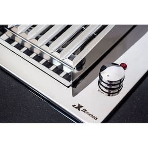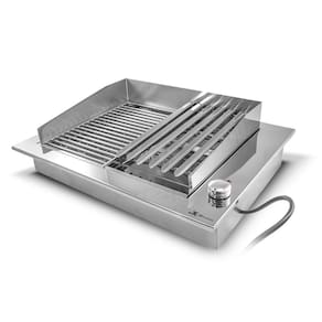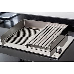 Construída em aço inoxidável 304 com um elegante acabamento polido, inclui uma grelha estilo argentina, uma grelha parrilla, uma bandeja coletora de gordura e um protetor contra respingos. Atinge sua temperatura máxima em até 15 minutos, e a montagem é feita por meio de encaixe, eliminando a necessidade de parafusos, buchas ou adesivos; simplesmente embuta a churrasqueira em um nicho previamente preparado na bancada. As partes removíveis facilitam a limpeza do aparelho, e seu design contemporâneo permite que ele se integre harmoniosamente à decoração, aprimorando a estética de sua cozinha, varanda ou área gourmet.